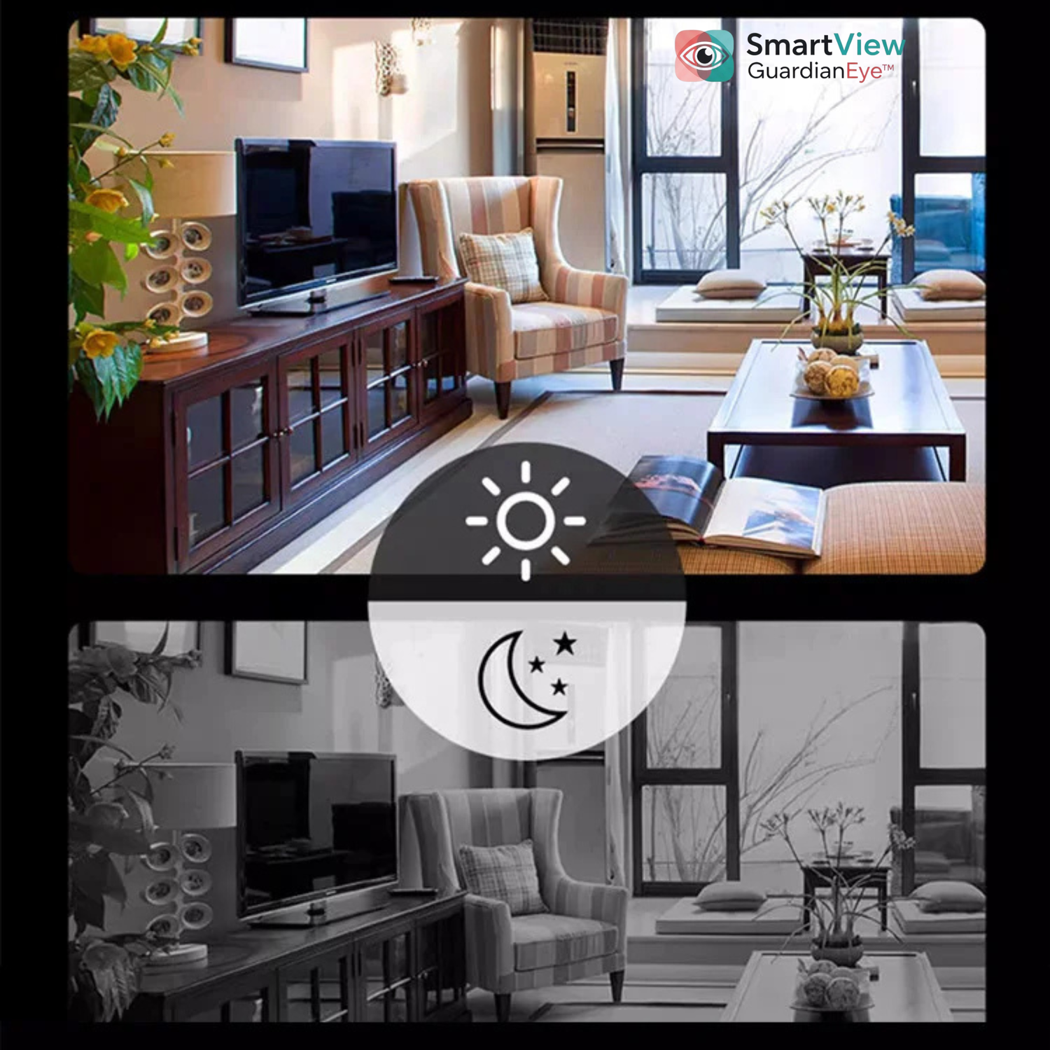 The SmartView GuardianEye™'s PIR MotionSense™ technology goes beyond common detection. It accurately identifies important activities, such as a package arriving or people entering, instantly triggering recording.